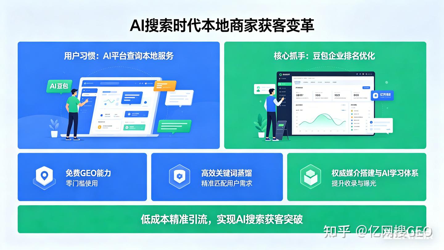 豆包企业排名优化方案:本地商家免费引流工具推荐 —— 亿网搜免费 GEO 助力 AI 精准获客