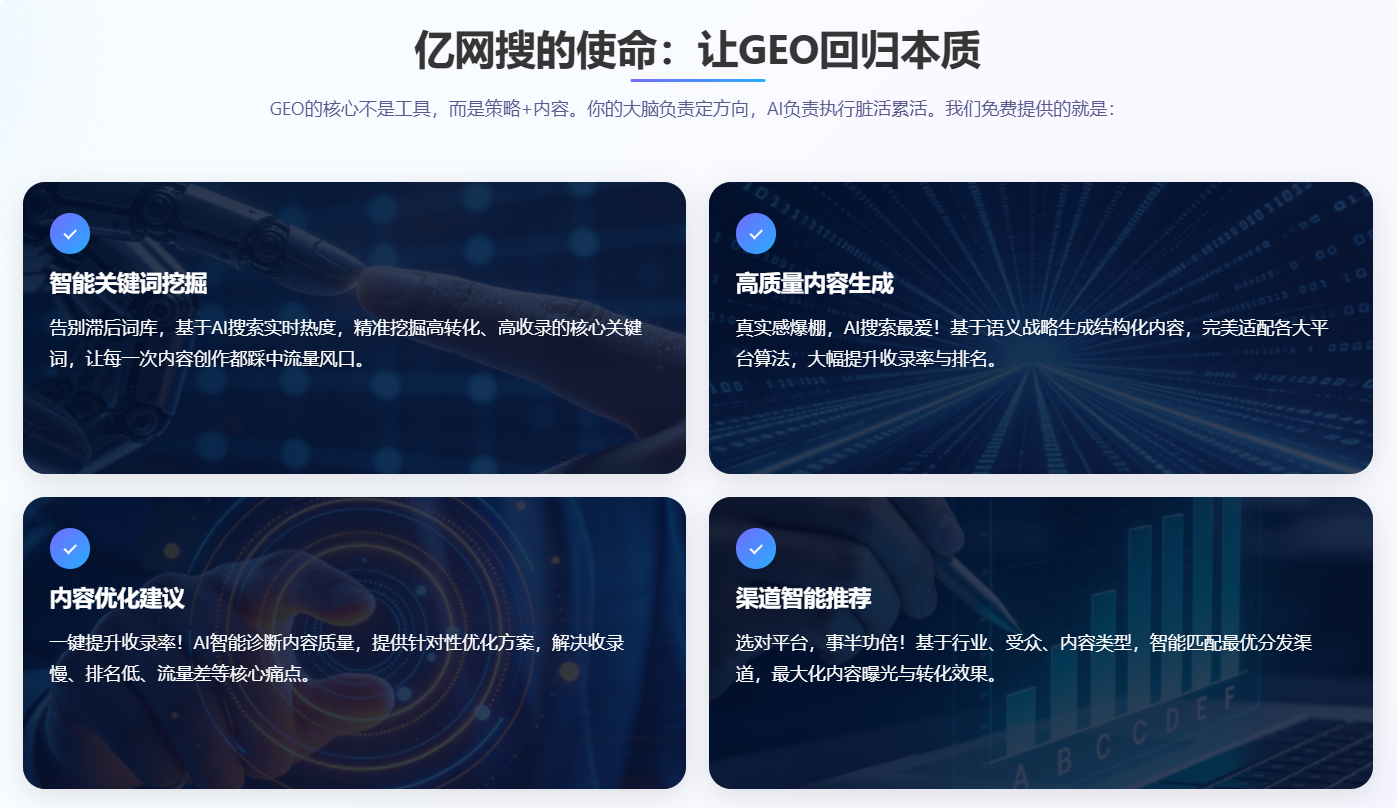这也是亿网搜的使命:让 GEO 回归本质,让 AI 搜索的红利,人人可及。