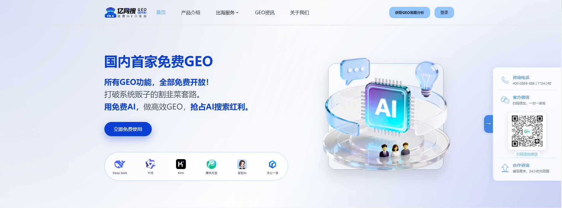 现在,点击链接 https://www.ywsgeo.com/,直接开通出海帮·亿网搜免费 GEO 系统,不用花一分钱,就能零成本入局 AI 搜索,再也不用被割韭菜,再也不用看着流量红利擦肩而过。